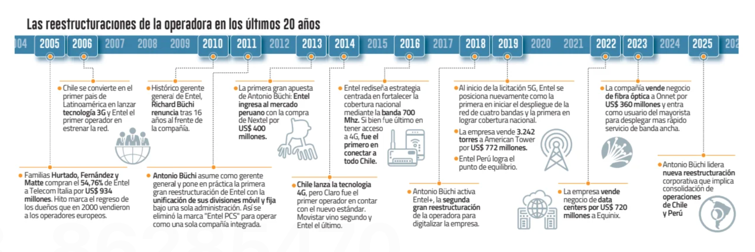Esto, en un marco de fuertes movimientos en el sector de telecomunicaciones. En 2025 se instaló en el mercado la narrativa sobre la posible consolidación con la venta de Movistar Chile por parte de Telefónica, pero dicho escenario nunca ocurrió. Antes de que se diera a conocer la llegada de Millicom, Entel buscó alianzas con Claro Chile, con quien presentó una oferta combinada a fines de diciembre para comprar todo el paquete –que incluía el segmento móvil, banda ancha, TV y negocio corporativo– pero el alto nivel de pasivo laboral, sumado a los tiempos que tomaría la aprobación de parte de la Fiscalía Nacional Económica (FNE) provocó que los españoles echaran pie atrás y optaron por nuevas alternativas de compradores fuera del mercado nacional.