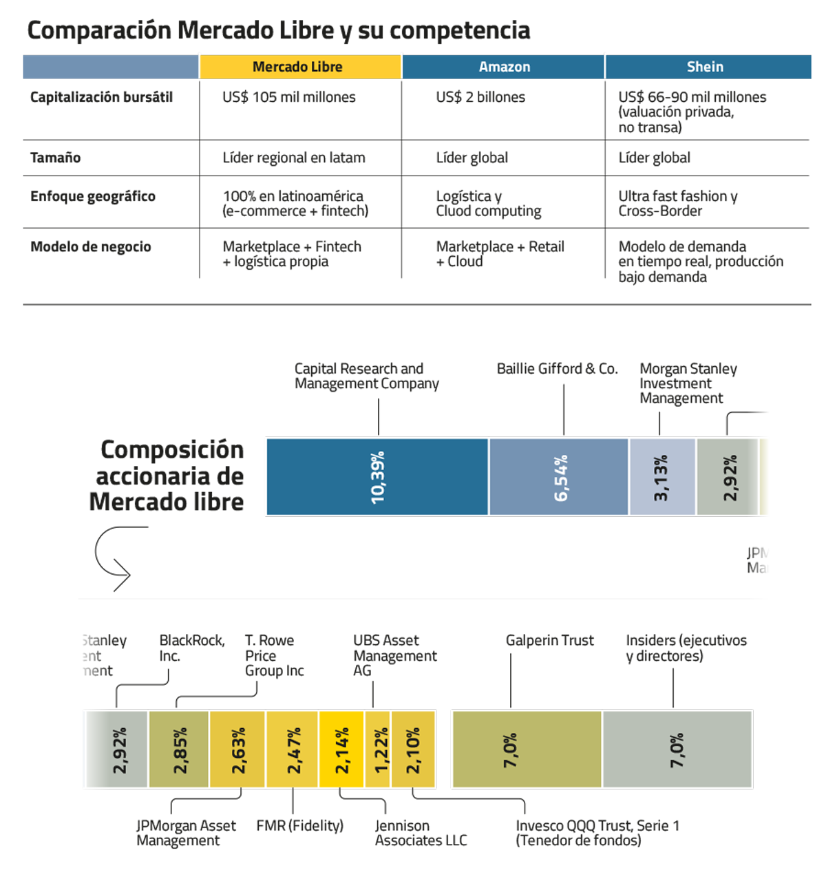 Esta dinámica es seguida de cerca por el mercado. JPMorgan mantiene una recomendación “neutral” para la acción, que a comienzos de este año cotizaba en torno a US$ 1.970, tras haber superado los US$ 2.600 en 2025. El banco advierte que la presión competitiva obligará a seguir reinvirtiendo en logística. El margen operativo cayó desde 13,5% a fines de 2024 hasta 9,8% en el tercer trimestre de 2025.