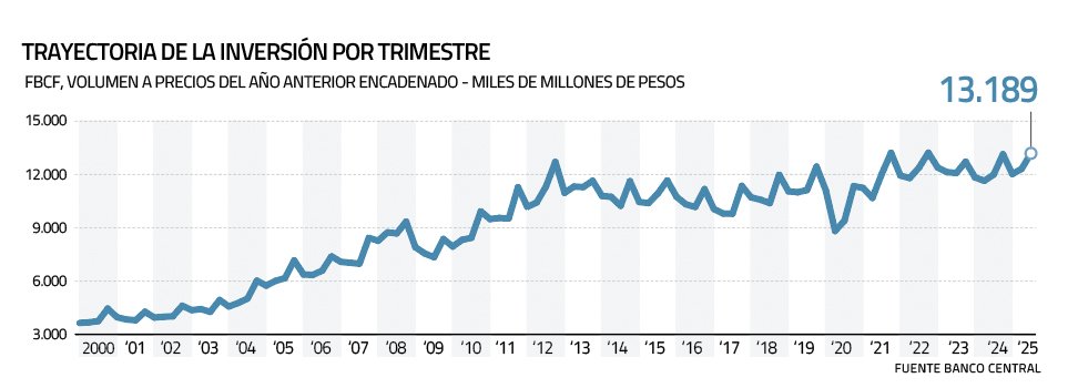 Según los datos del Banco Central, entre el año 2000 y el 2013 la inversión creció en promedio 9% anual. Entre 2014 y 2024, en tanto, aumentó apenas 0,9%. A partir de ese diagnóstico el nuevo equipo económico considera crucial estimular la inversión privada y, con ello, el crecimiento económico y el empleo.