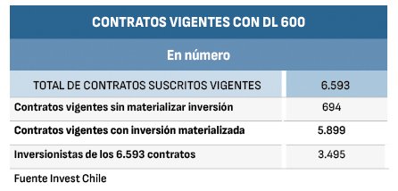 El DL 600 fue derogado en 2016, por lo que desde el primero de enero de ese año no se firmaron más contratos de ese tipo. Sin embargo, dado que estos eran a largo plazo, aún hay vigentes 6.593 contratos suscritos con 3.495 inversionistas extranjeros.