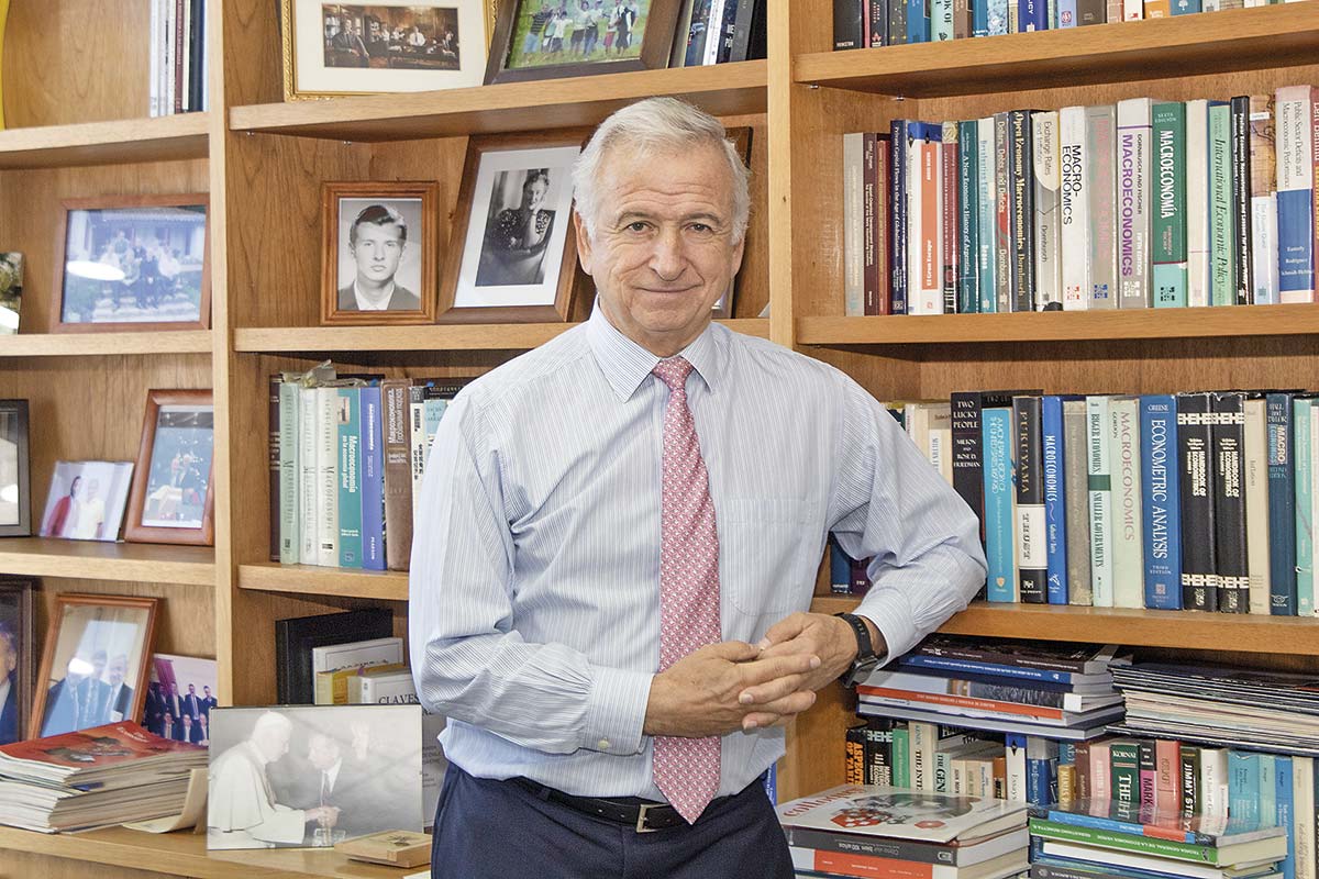 El Exministro de Hacienda durante los dos gobiernos del exPresidente Sebastián Piñera y director de Clapes UC, Felipe Larraín, nos recibe en su oficina con vista al Cerro Santa Lucía, en pleno centro de Santiago. A la distancia se escuchan los gritos de la primera manifestación en contra de las recientes medidas adoptadas por el Gobierno del Presidente José Antonio Kast.