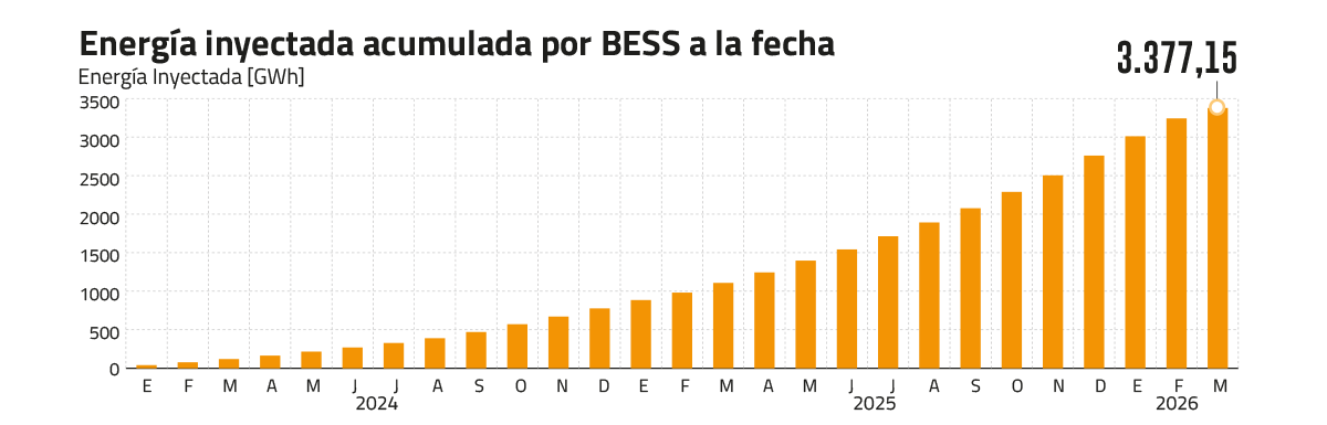 “Estas tecnologías permiten almacenar energía renovable que no es consumida durante el día —principalmente solar— y utilizarla en horarios de mayor demanda, como la noche, reduciendo costos de operación y emisiones de CO2. Adicionalmente, las baterías están contribuyendo a garantizar la seguridad del servicio eléctrico a través de la provisión del Servicio Complementario de Regulación de Frecuencia, el que permite estabilizar el sistema frente a fallas de alguna instalación de generación o transmisión, y gestionar la variabilidad de las fuentes de energía renovable variable, como la eólica y solar”, añadió Ávalos.