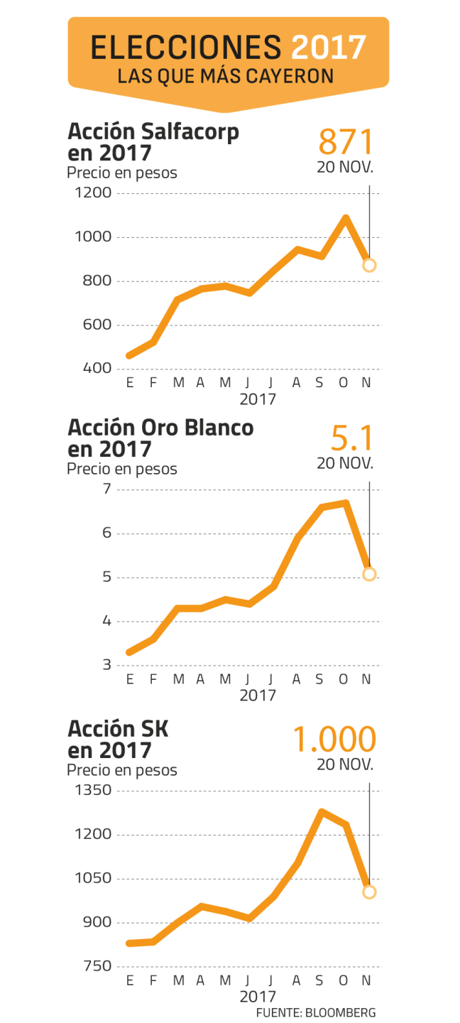 Todas las acciones del IPSA cayeron ese día. Salfacorp lideró las pérdidas cayendo casi 17%, arrastrada por la desilusión de los inversionistas, que incluso apostaban por un triunfo de Piñera en primera vuelta, o que al menos obtuviera un resultado más cercano al 45%. Los analistas apostaban a que el sector inmobiliario y de construcción sería uno de los principales beneficiados por el cambio de ciclo político tras el segundo gobierno de Michelle Bachelet, pero el resultado de la primera vuelta retrasó el repunte.