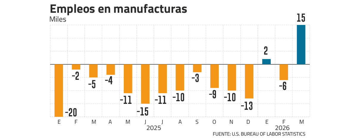 Tras el reporte de marzo, la distribución de eso nuevos empleos también será analizada al detalle. Contrario a lo que prometió la Casa Blanca, no es la manufactura la mayor fuente de contrataciones, a pesar de un repunte reciente. Tampoco es la construcción de centros de datos, ni la Inteligencia Artificial. Es el sector de la salud y servicios sociales generó casi la mitad de los nuevos empleos en marzo. La Oficina de Estadísticas Laborales proyecta que será el sector de mayor crecimiento laboral en la próxima década… O hasta que los robots puedan reemplazar al personal de enfermería.