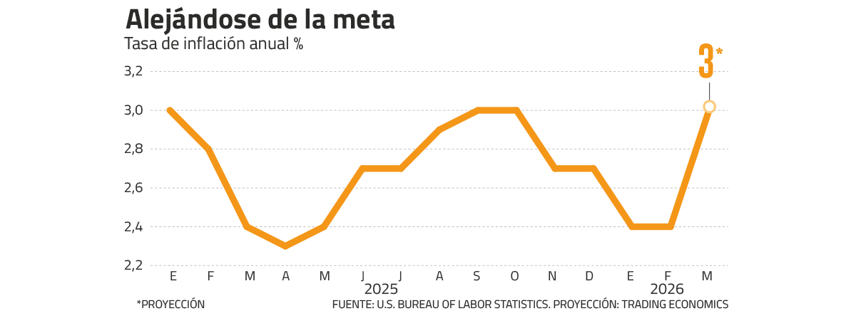 La próxima semana la atención estará en EEUU, donde se reportarán dos índices de precios. El jueves 9, el índice de precios del gasto en consumo personal (PCE) de febrero —uno de los principales indicadores para la Fed— mostrará cuál era la dirección de la inflación previo al inicio de la guerra en Irán. Ya había señales de que la baja de la inflación se había desacelerado. Se espera que el PCE muestre una tasa anual de 2,8%, igual que en enero.