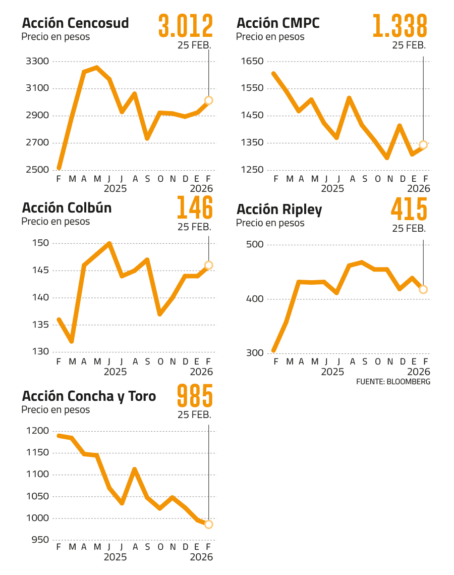 Bci es aún más optimista y ve un upside cercano a 16%. “Nuestras proyecciones contemplan un crecimiento por sobre inflación para el 2026, pese a la mayor base de comparación producto de la mayor venta a turistas argentinos durante el 2025. Creemos que la compañía está bien posicionada, enfocándose en mejorar la rentabilidad de sus negocios, enfocando el mix de venta a su cliente objetivo en su segmento de retail, un crecimiento con riesgo controlado en su segmento bancario, donde el 2026 estimamos crecimiento en las colocaciones y el buen desempeño del segmento inmobiliario comercial en Perú”, sostuvo.