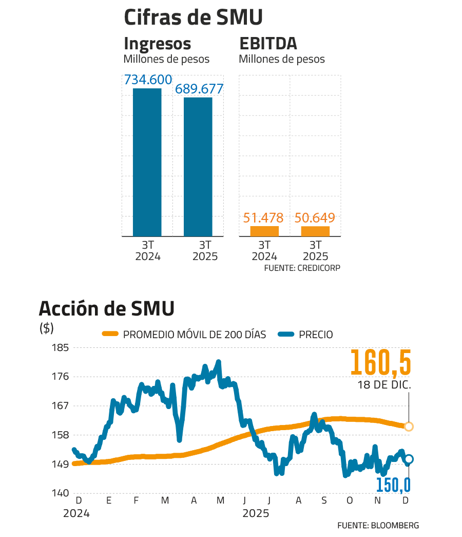 A punto de cerrar 2025, la acción de SMU anota una caída de 8% durante el año, principalmente golpeada por la fuerte competencia en Chile, y un margen de Ebitda que no termina por despegar.